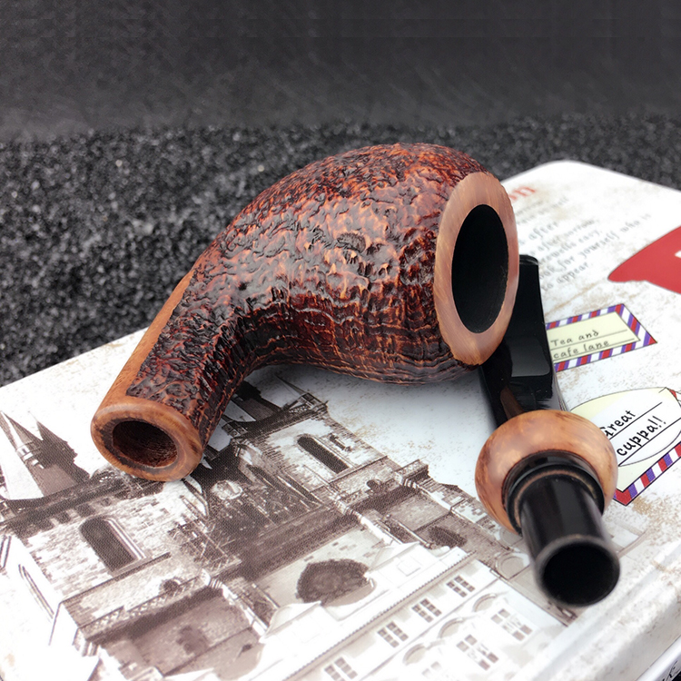 意大利马仕Mastro de paja 石楠木烟斗⑤ 麻面弯斗 9mm