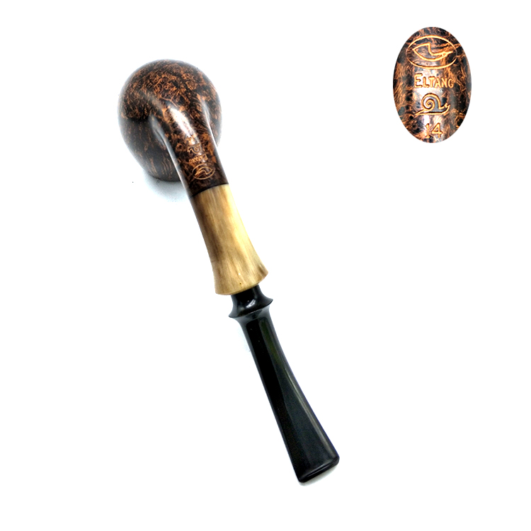《 汤姆-艾尔唐Tom Eltang手工石楠木烟斗⑤ 牛角大弯斗 蜗牛级 14 》