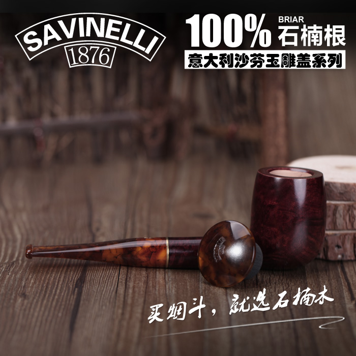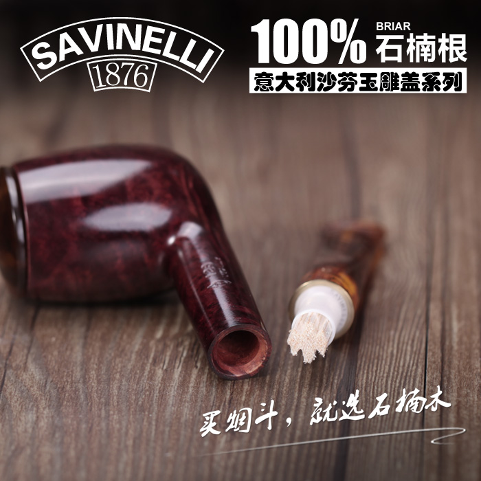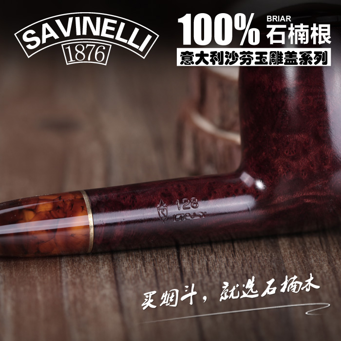 《 意大利沙芬SAVINELLI 手工石楠木烟斗 128 玉雕盖 光面直斗 9mm 》