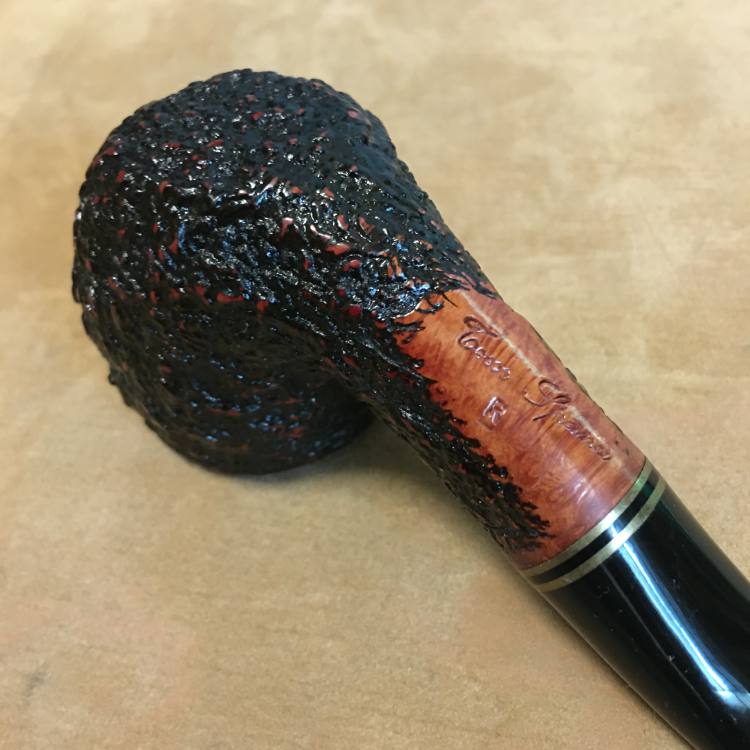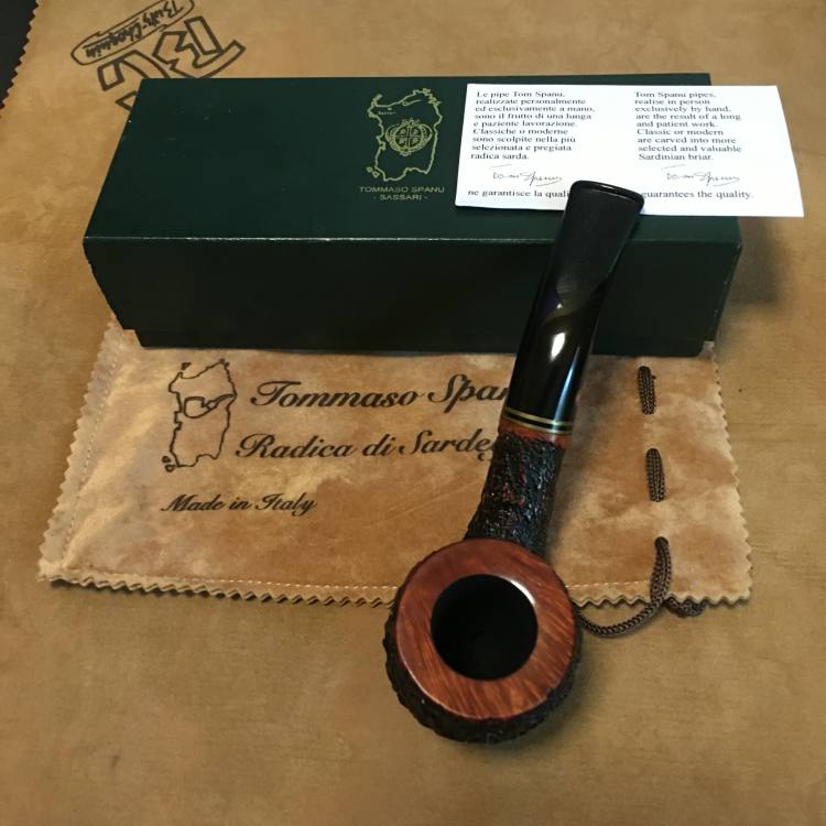 意大利汤姆-斯派努Tom Spanu石楠木烟斗 黑星麻面弯斗 光面斗口