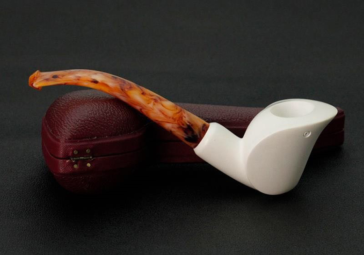 当今世上,除了石楠木烟斗,使用最广泛的恐怕是海泡石烟斗了,海泡石是一种珍贵的多孔矿物,是自然界最具渗透性的物质之一,质轻,散热性好,易于雕刻成型,在这一点上,作为烟斗选材它要比石楠木优越。而且经过长时间的反复使用,烟草中的焦油和尼古丁可以使本身是白色的烟斗逐渐变成一种自然深邃的棕金色或桃木色。