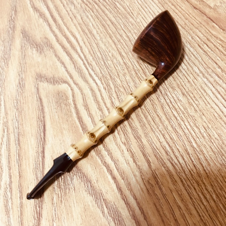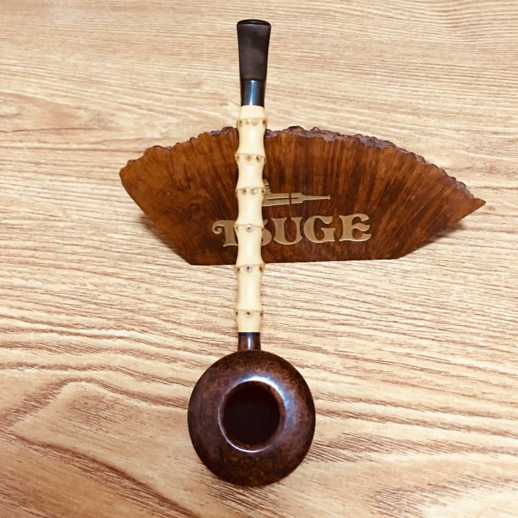 《 日本拓植IKEBANA手工石楠木烟斗 菊池-KIKUCHI 18-041 光面竹节斗 》