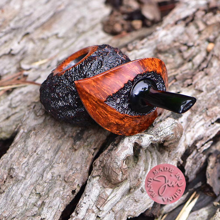 《 中国斗师 戴进JIN 手工石楠木烟斗 02 经典德富鱼款 喷砂斗 》