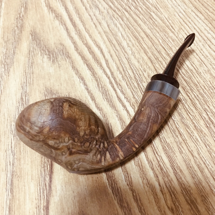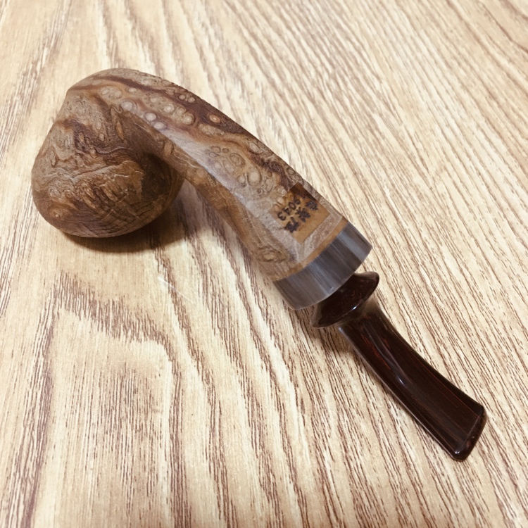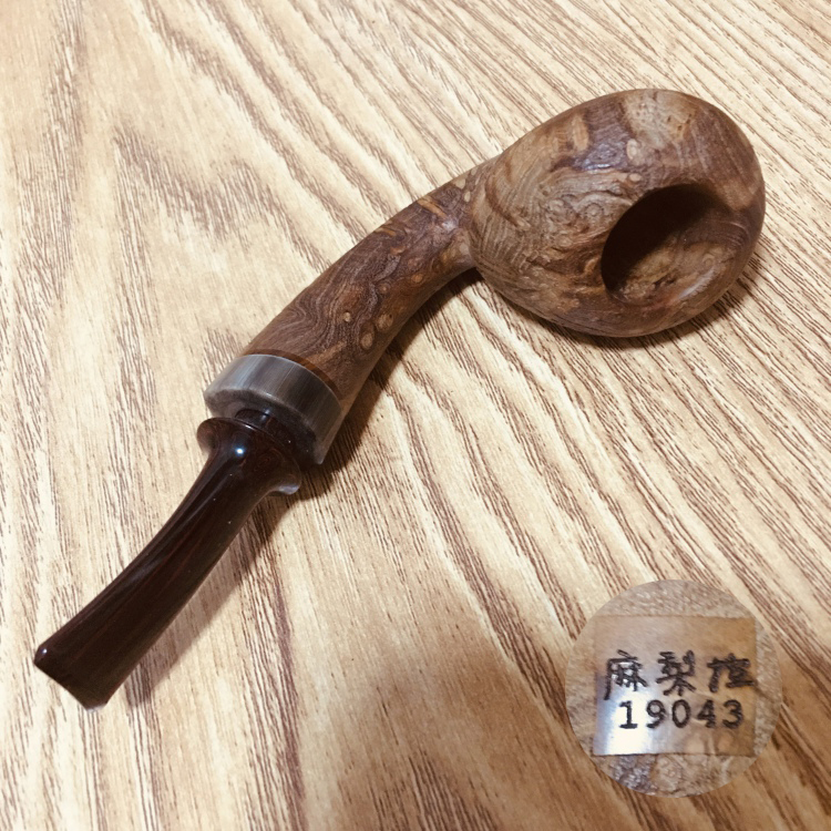 中国斗师 麻梨控 山杏木手工烟斗 虎皮纹原木色斗 19043