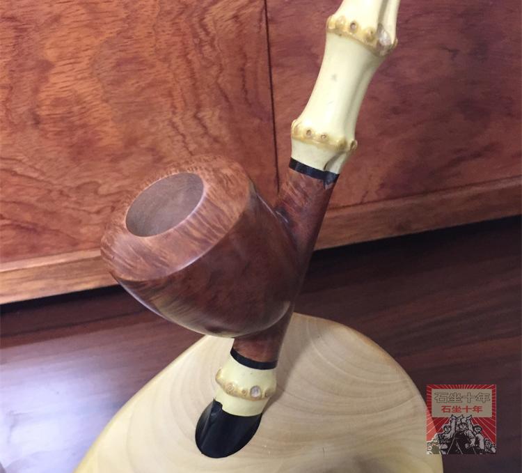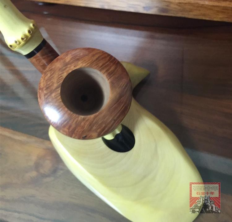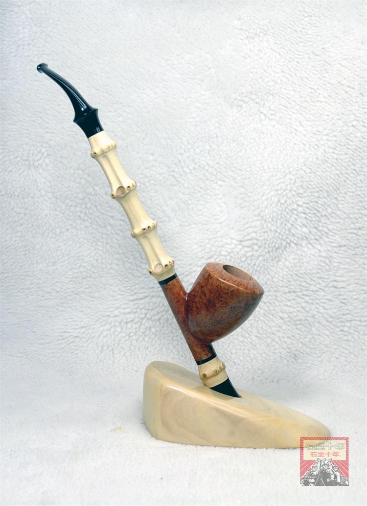 趣味!中国斗师 伐檀社 手工石楠木烟斗套装 竹节鹅毛笔烟斗+底座