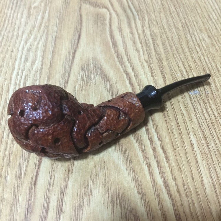 《 无印UNMARKED 手工石楠木烟斗 -谢基塔编织带款- 镂空雕刻斗 二手 》