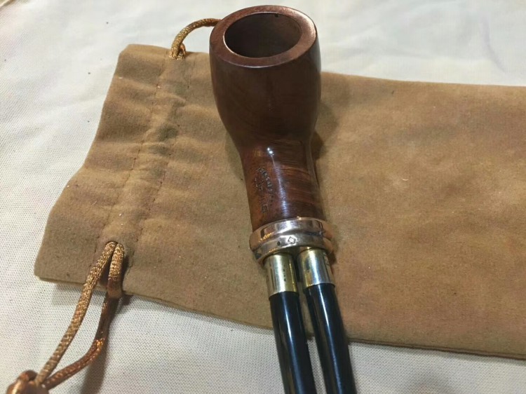 《 趣味!德国THE BRINDISI 全新老斗 个性石楠木烟斗 罕见双烟道斗 》