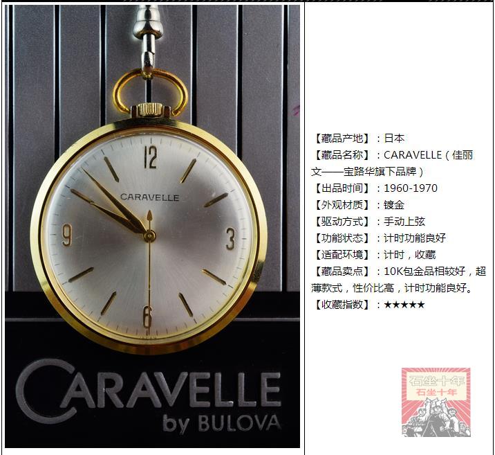 日本Caravelle 佳丽文 超薄手动上链机械怀表 古董收藏品