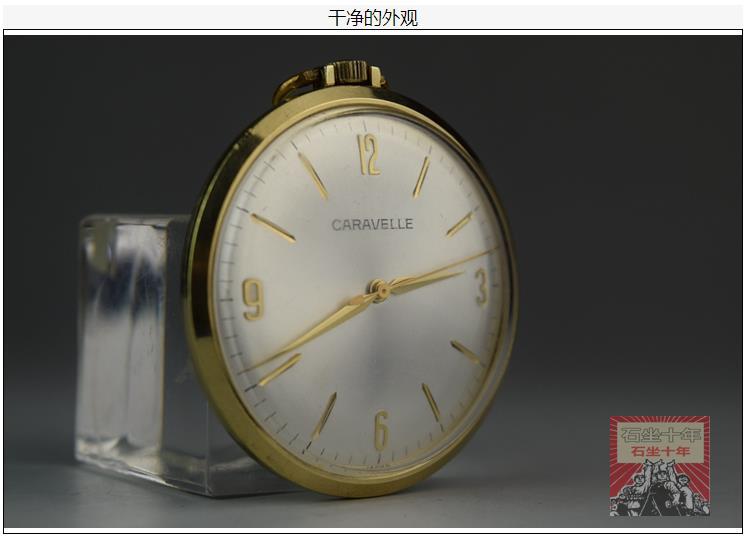 《 日本Caravelle 佳丽文 超薄手动上链机械怀表 古董收藏品 》