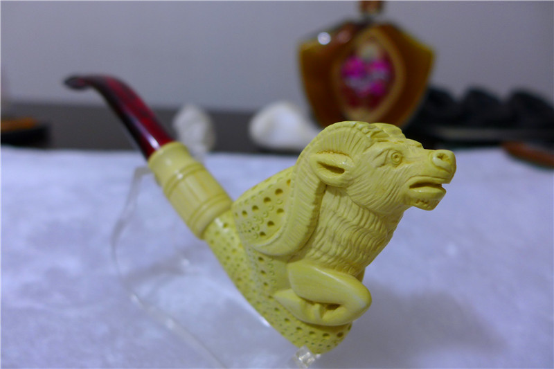 编号:穆尔辛光面镂空花蓝海泡石烟斗
