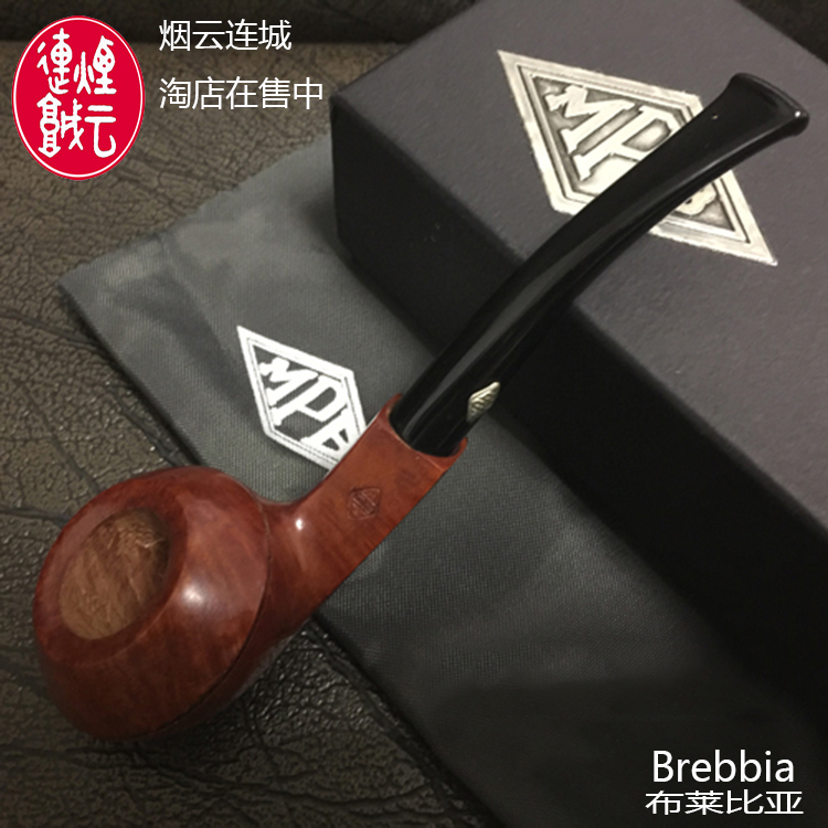 意大利布莱比亚Brebbia 手工石楠木烟斗 MPB 长短双嘴 光面牛头斗