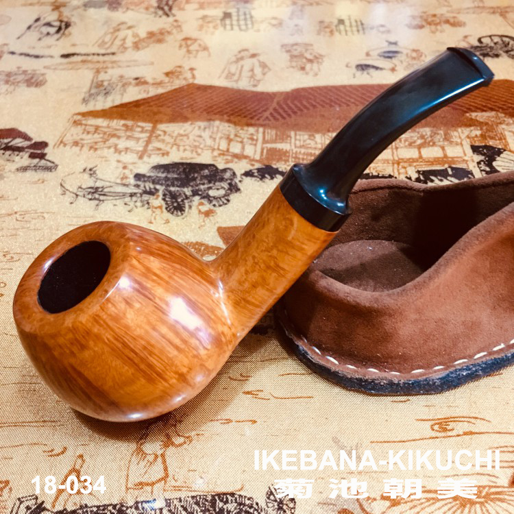 日本拓植IKEBANA手工石楠木烟斗 菊池朝美-KIKUCHI 18-034 光面斗