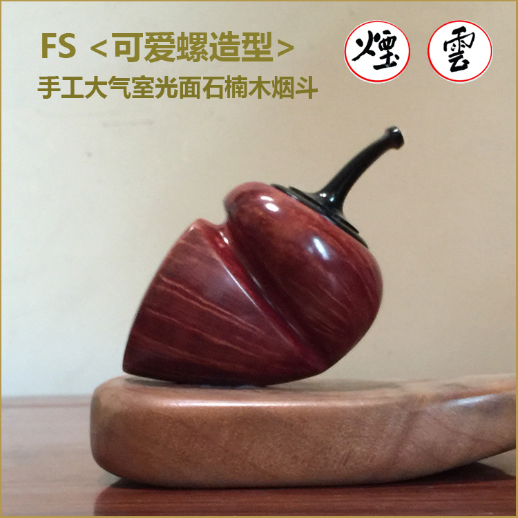 中国斗师 风行 FENG 手工石楠木烟斗 可爱螺造型 大气室光面斗