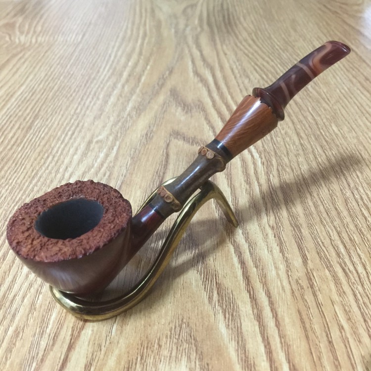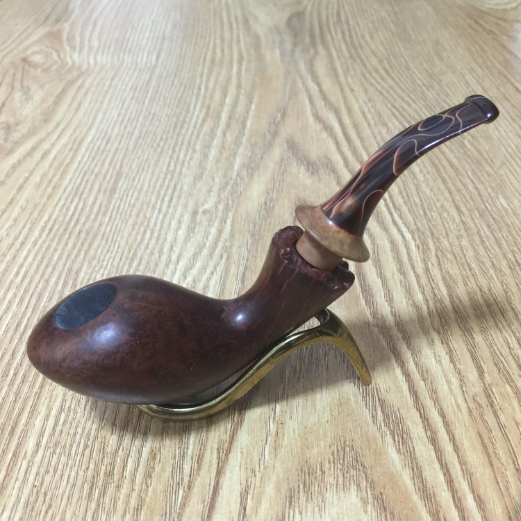中国斗师“蔡斗”手工石楠木烟斗 05 葫芦钵+大气室+珊瑚玉扳指