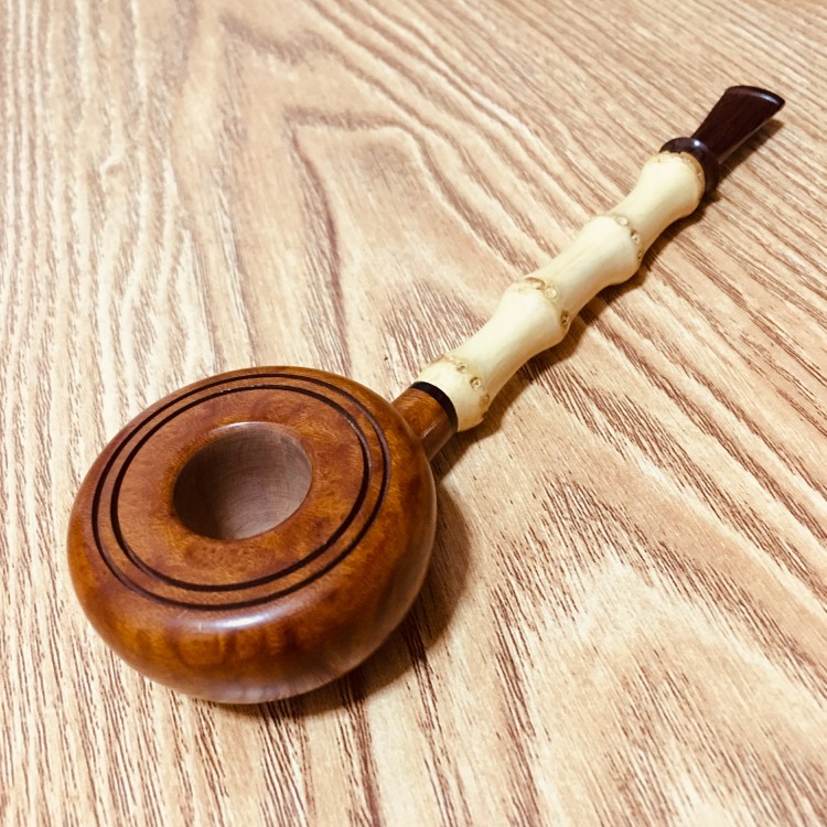 中国斗师“蔡斗”手工石楠木烟斗 06 茶杯款设计 长杆竹节斗
