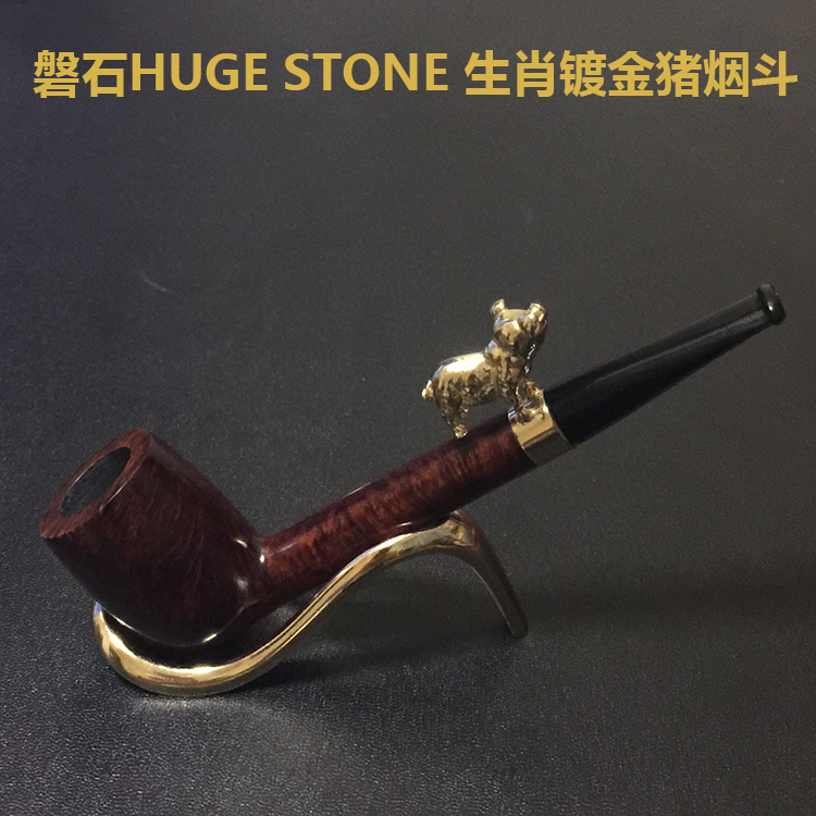 磐石HS STUDIO手工石楠木烟斗P07 -生肖镀金猪- 光面直斗