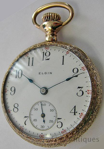 Elgin 埃尔金 包金壳 白瓷盘 古董 开面怀表