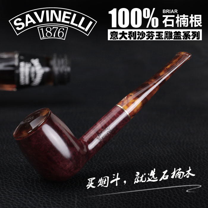 意大利沙芬SAVINELLI 手工石楠木烟斗 128 玉雕盖 光面直斗 9mm