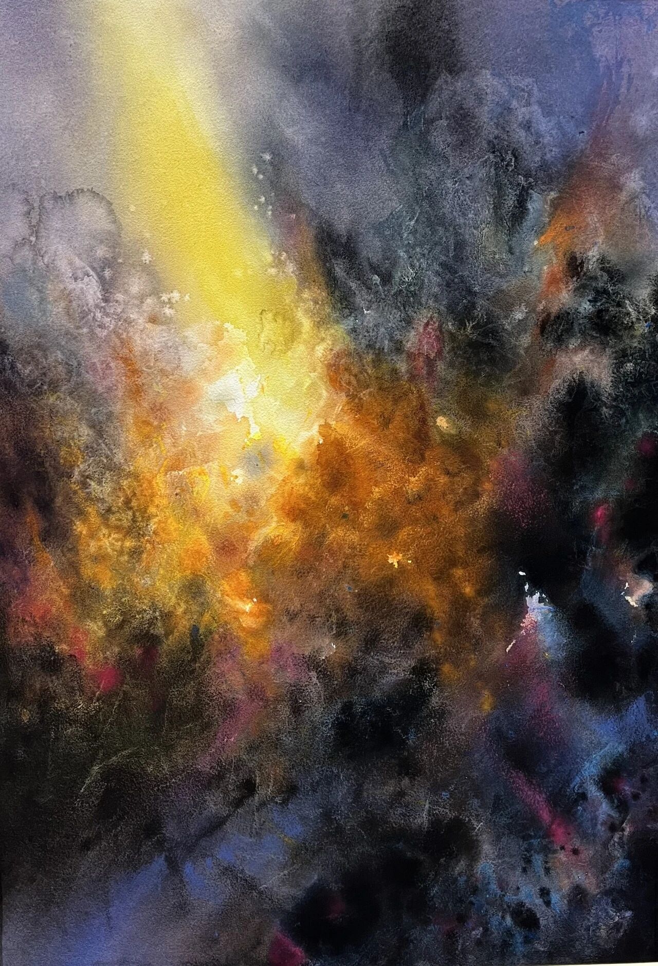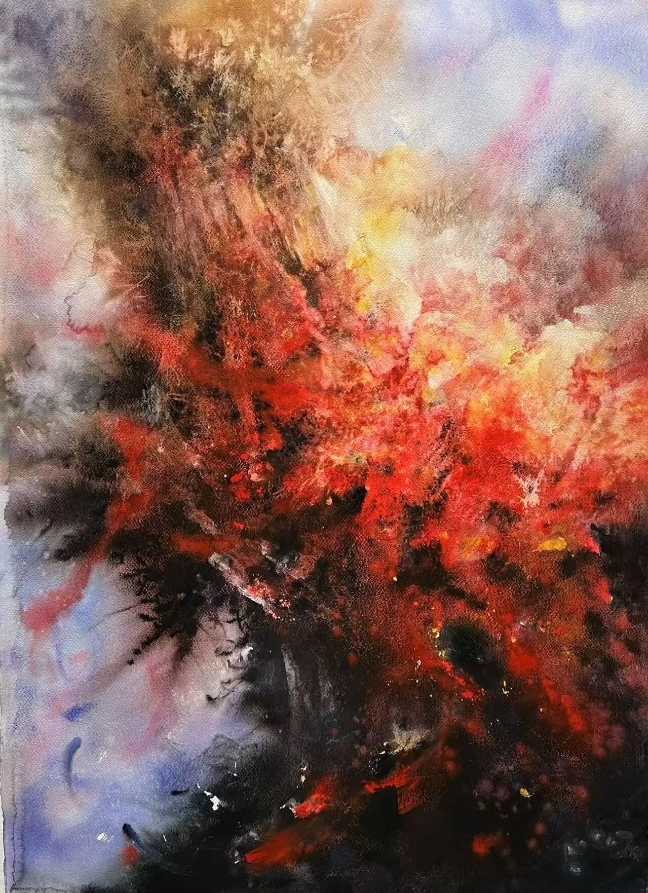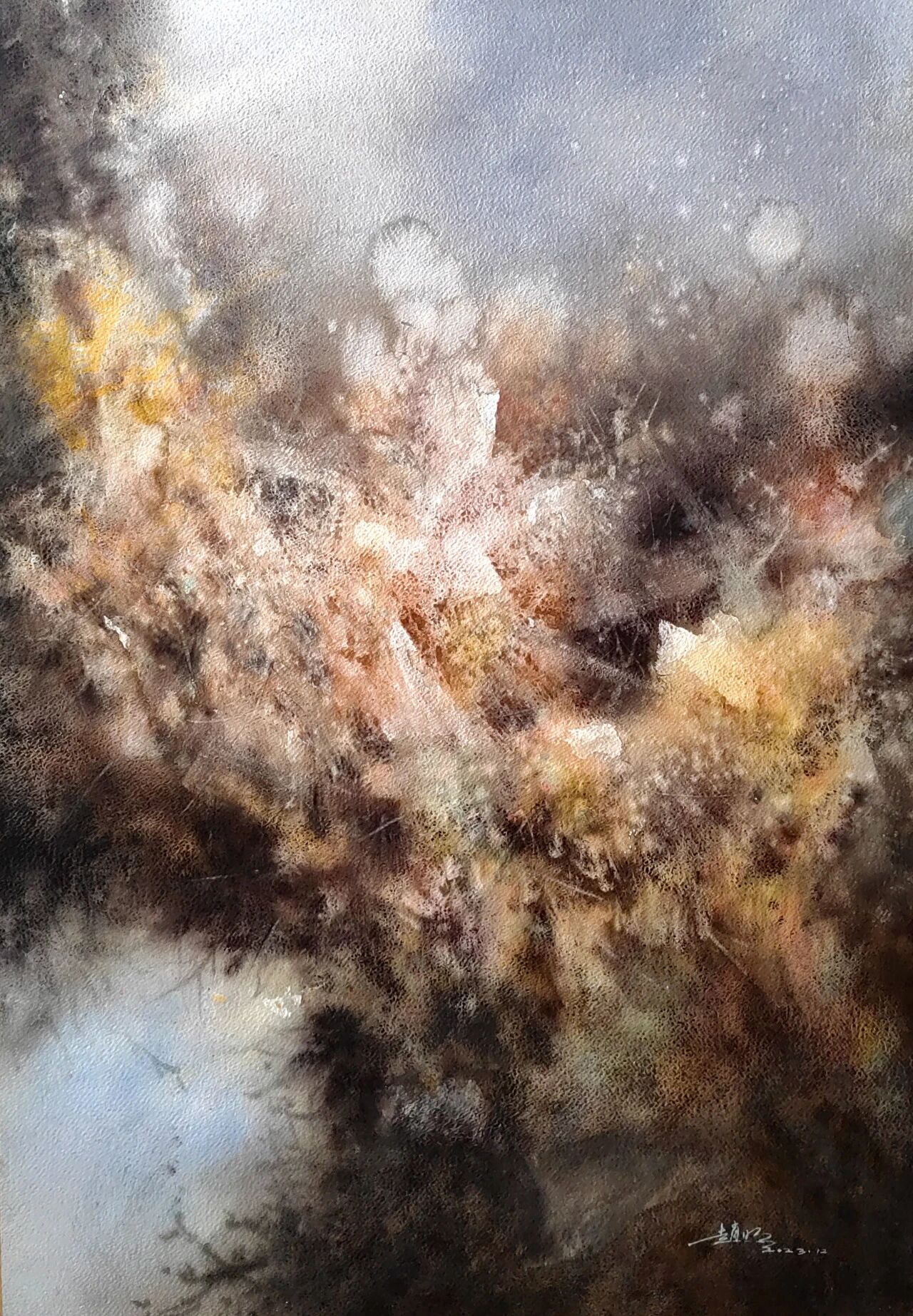 我今年已经六十有余,回首过往,人生的坎坷与磨难都已成为我艺术创作的养分。在我的水彩世界里,枯枝可以焕发生机,老根能够重获新生,这一切都源于我对顽强生命力的敬畏,对阳光的无限崇拜。我的创作之路,是一场从具象到意象的自我蜕变,是一次从描绘自然到表达生命本质的精神旅程。