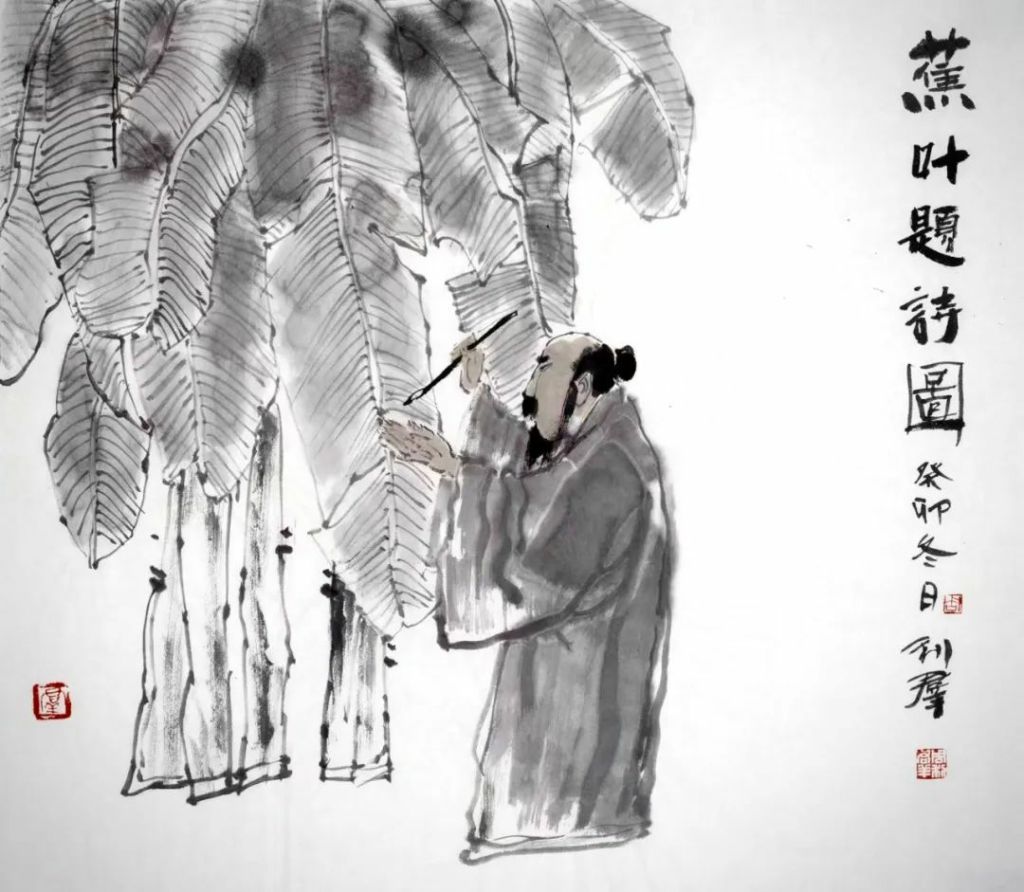 蕉叶题诗图