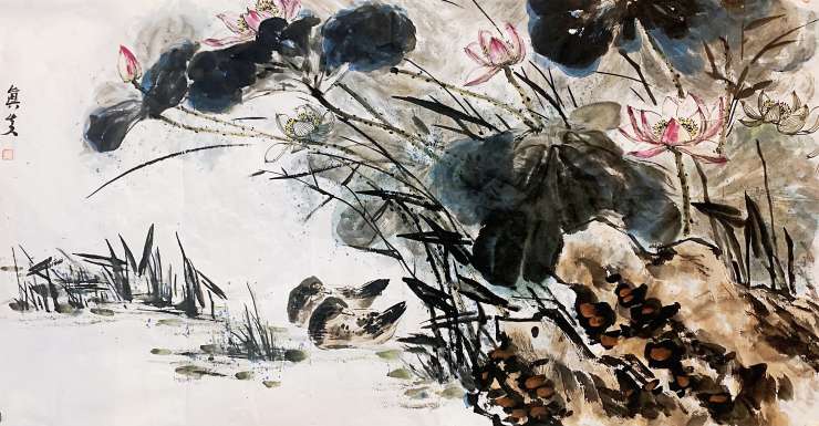 荷花鸳鸯图