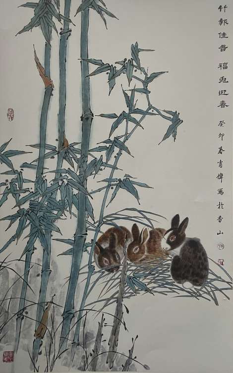 竹报佳音 福兔迎春
