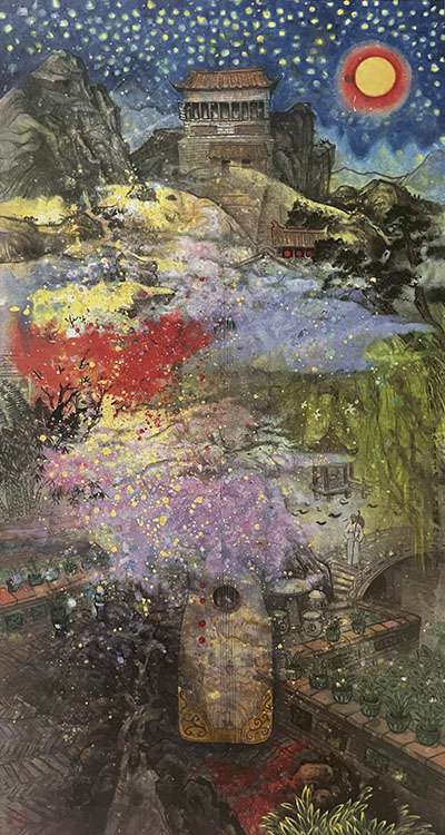 邀山伴月听琴声