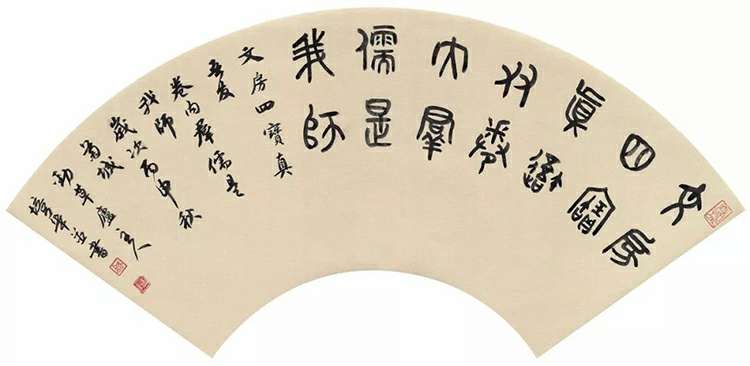 《 文房卷内联 》(篆书对联扇面)