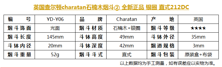 英国查尔顿Charatan石楠木烟斗② 全新正品 银圈 直式212DC