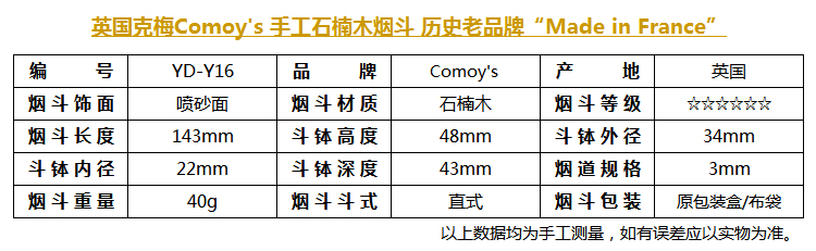 英国克梅Comoy's 手工石楠木烟斗 历史老品牌 Made in France