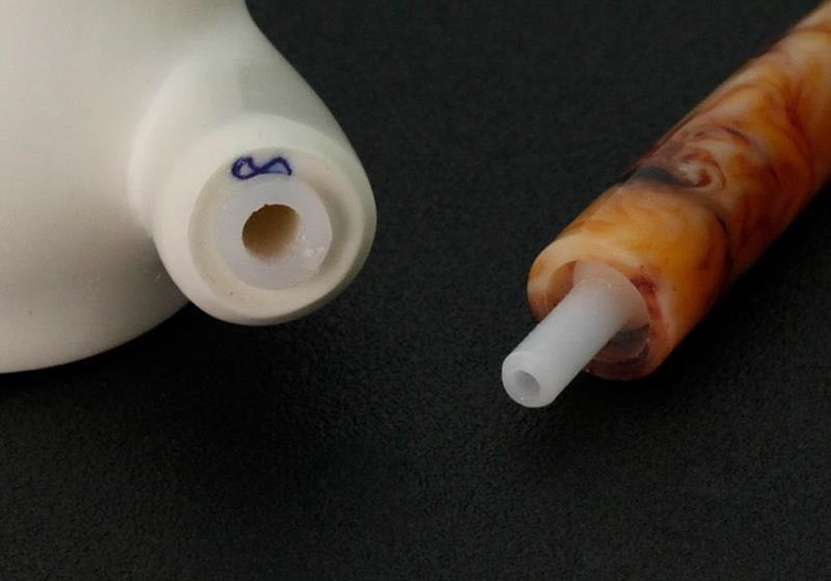 当今世上,除了石楠木烟斗,使用最广泛的恐怕是海泡石烟斗了,海泡石是一种珍贵的多孔矿物,是自然界最具渗透性的物质之一,质轻,散热性好,易于雕刻成型,在这一点上,作为烟斗选材它要比石楠木优越。而且经过长时间的反复使用,烟草中的焦油和尼古丁可以使本身是白色的烟斗逐渐变成一种自然深邃的棕金色或桃木色。