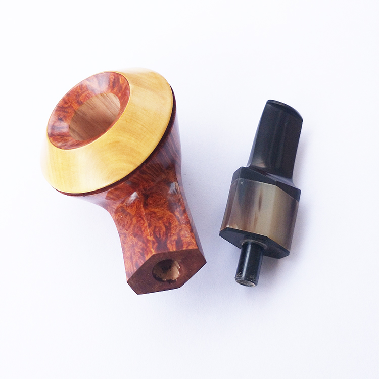 中国斗师 “馬”牌手工石楠木烟斗① 牛帽斗 黄杨木钵口 牛角柄饰