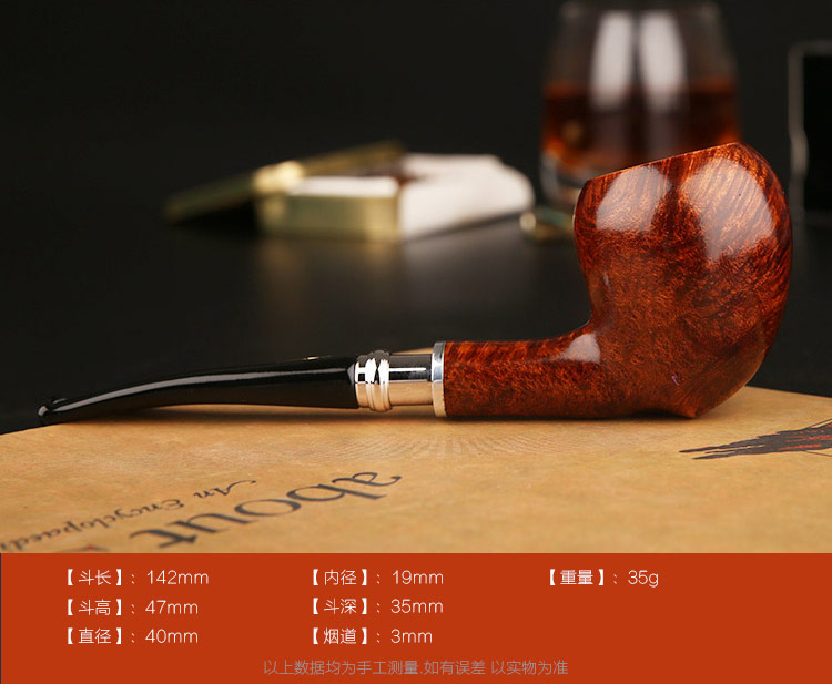 材质:石楠木 烟斗长度:142 mm 斗钵高度:47 mm 斗钵外径:40 mm