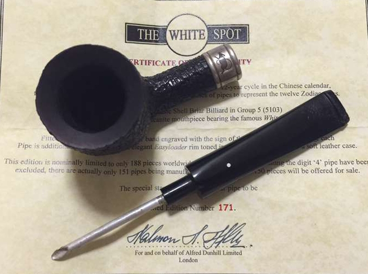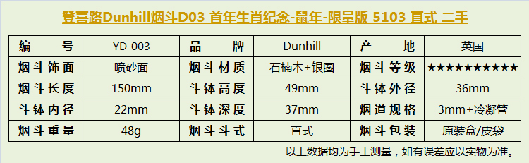 此款鼠年纪念版烟斗是英国登喜路Dunhill首年生肖纪念 版。全球限量版 188把 此把为171把 包含:原厂包装盒/纪念版专用真皮烟斗包/鼠年纪念说明图