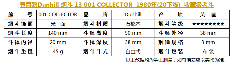 《 登喜路Dunhill 烟斗 13 001 COLLECTOR 1980年(20下线) 收藏斗 》