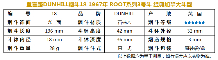 《 登喜路DUNHILL烟斗18 1967年 ROOT系列3号斗 经典加拿大斗型 近新 》