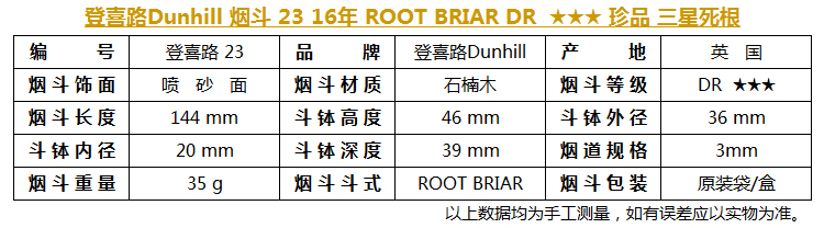 《 登喜路Dunhill 烟斗 23 16年 ROOT BRIAR DR 珍品 三星死根 》