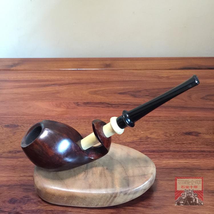 趣味!中国斗师 伐檀社 手工石楠木烟斗套装 竹节鹅毛笔烟斗+底座
