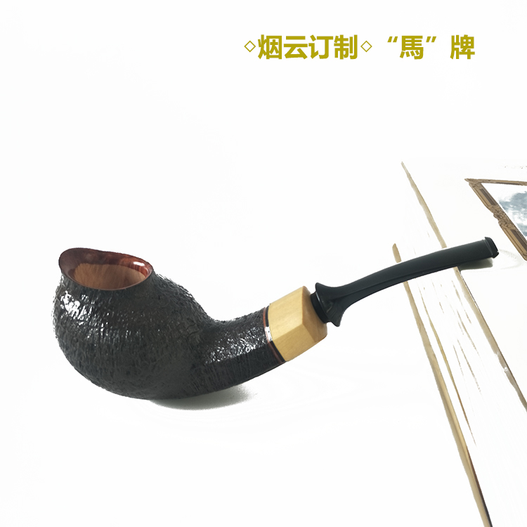 中国斗师 “馬”牌手工石楠木烟斗② 鱼唇河豚款 喷砂斗 黄杨木柄