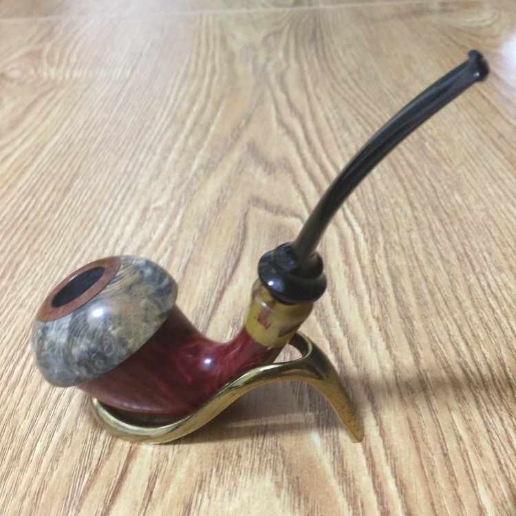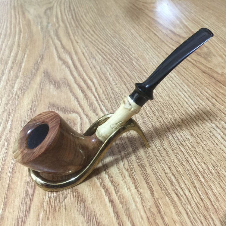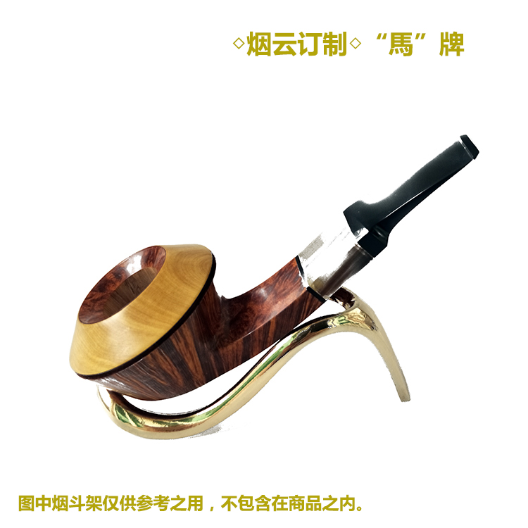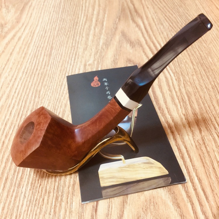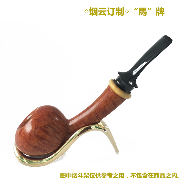 中国斗师 “馬”牌手工石楠木烟斗③ 光面长柄橡果斗 黄杨木圈