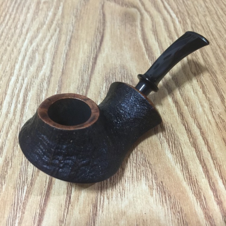 中国斗师 -葫芦哥- 手工石楠木烟斗 长柄喷砂 黑珍珠斗
